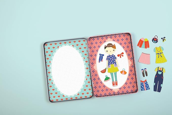 - GREAT FOR TRAVEL: A perfect travel and quiet time activity, the hinged tin of the cat fashion playset also acts as a flat surface to decorate the scenes and store all of the pieces, as the magnets adhere to the package.