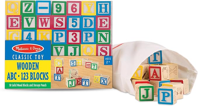 Melissa & Doug Deluxe ABC/123 1-Inch Blocks Set With Storage Pouch (50 pcs) - Letters And Numbers/ABC Classic Wooden Blocks For Toddlers And Kids Ages 2+