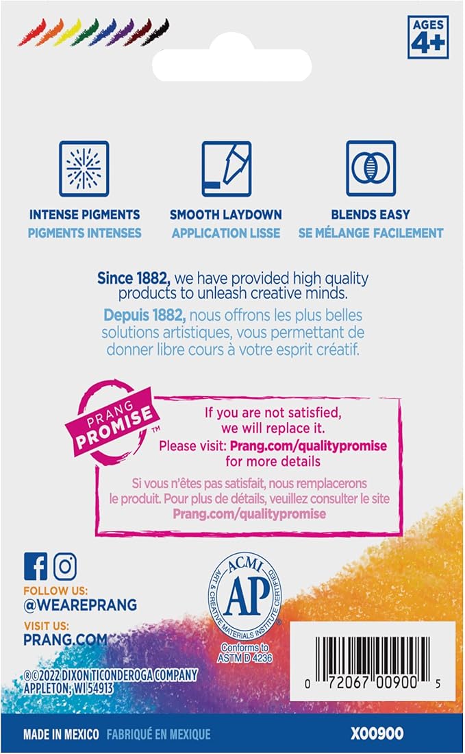 - TRUSTED BRAND: The Prang brand is beloved by children, parents, and teachers alike for its bold colors and superior durability. Prang is part of the Dixon Ticonderoga family of products which includes Ticonderoga, Dixon, Prang, Pacon, Tru-Ray, UCreate, Fadeless, Classroom Keepers, Bordette, Creativity Street, Spectra, Strathmore, Canson, Daler-Rowney, Lyra, Das, Maimeri, Princeton Artist Brush and more.