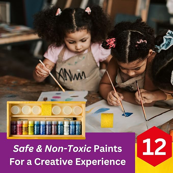 Stockmar Complete Watercolor Paint Set - 12 Colors, in Wooden Storage Box, Includes 2 Natural Brushes, 6 Containers, Cloth, Palette, Sponge, Waldorf Art Supplies