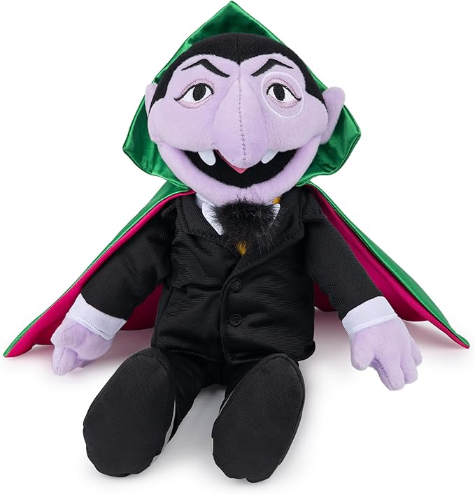 - SESAME STREET COUNT PLUSH: The Count LOVES to count This cute 14” Count von Count plush features soft purple plush, his signature black outfit, and green satin cape. Collect all your favorite Sesame Street characters with the official GUND series