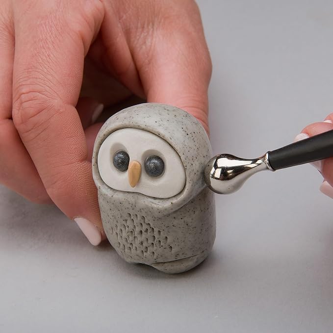 - A set of double-ended tools with metal ball ends for shaping clay and flexible tips for smoothing and blending clay.