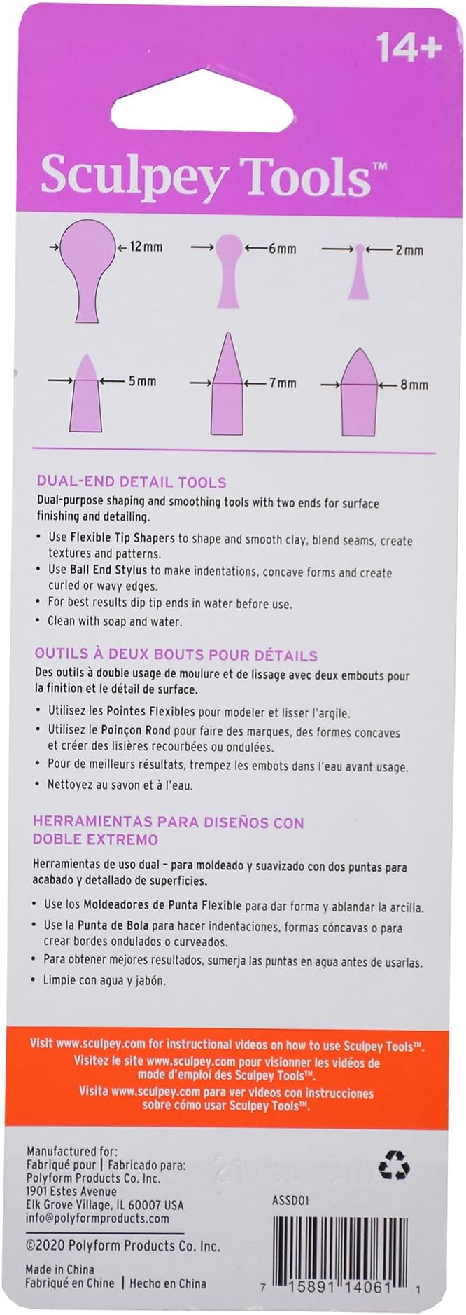 Sculpey Tools Dual End Tools Set, clay tools, use with multiple types of clay - polymer oven-bake clay, air dry and non dry, Great for projects from jewelry, home décor and more!