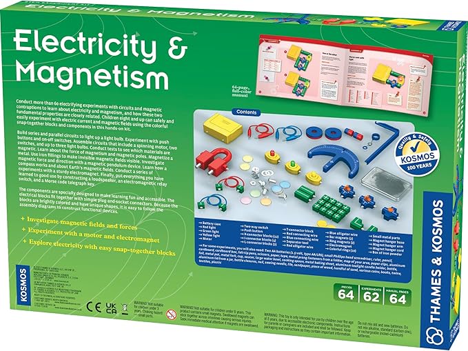 Thames & Kosmos Electricity & Magnetism Science Kit | 62 Safe Experiments Investigating Magnetic Fields & Forces for Ages 8+ | Assemble Electric Circuits with Easy Snap-Together Blocks