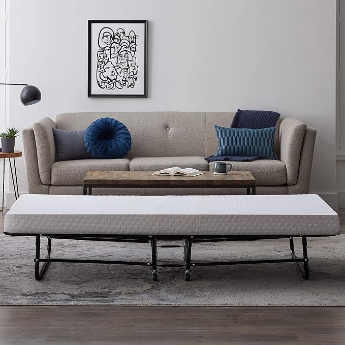 - EASY SETUP - Quickly pull out the bed for guests or children, then fold and roll away for super easy storage. Caster wheels allow for quick and easy transport and set up