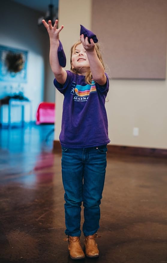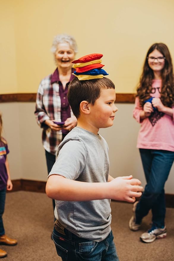Square 4" Bean Bags, Two Each, red, Orange, Yellow, Green, Blue, and Purple with Drawstring Storage Bag, Direct from USA Manufacturer
