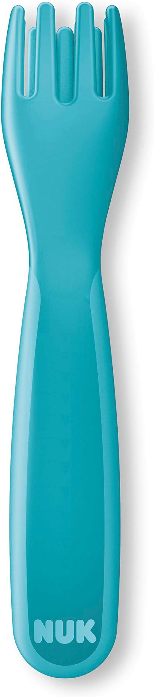 - NUK Pretensil fork has flexible outer tines and sturdy inner tines to easily pick up and hold soft fruits and veggies