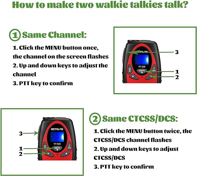 - Multichannel walkie talkies communication;one-to-one or one-to-more communication function allow more walkie talkies to communicate on the same channel