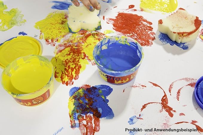 GIOTTO be-bè Finger Paint Set, Box of 4 x 150ml in Assorted Colours (Yellow, Green, Red, and Blue), Super-Washable, Ideal for Children