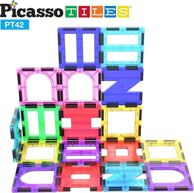 - [Starter Set for Magnetic Tiles] - PicassoTiles Starter Set comes with 42 pieces of Magnetic Tiles, a STEM entertainment to encourage creativity and development of toddlers using colorful geometric 3D shapes. These Magnetic Block will help develop boys and girls skills in Science, Technology, Engineering and Mathematics.
