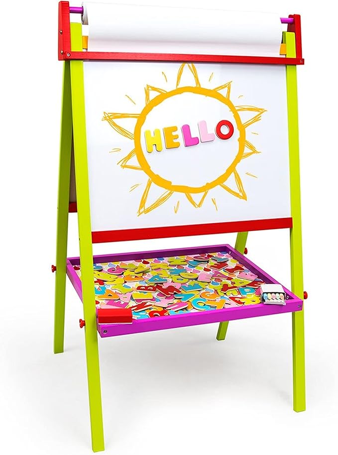 Little Artists 3-in-1 Standing Easel | Includes 75 Magnetic Letters, Rainbow Chalk, Eraser, and Easel Paper | Wooden Wonders Kids Creative Art Drawing Board | Art Class and School Teacher Activity