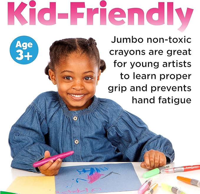 - TWISTABLE CRAYONS FOR TODDLERS: Perfect for toddlers, these twistable crayons feature a soft, buttery texture for easy application on smooth surfaces. The jumbo size fits comfortably in small hands, promoting a proper grip and reducing hand fatigue. Ideal for toddler art supplies, this thoughtful design helps kids develop essential motor skills and creative confidence