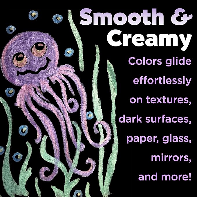 - 6 METALLIC GEL CRAYONS: Unleash your imagination with a rainbow of 6 vibrant glitter gel crayons. With sparkling pigments that make your artwork pop, these smooth gel crayons for kids glide effortlessly for easy blending. Versatile enough for various surfaces, including paper and glass, they bring your arts and crafts to life in dazzling colors