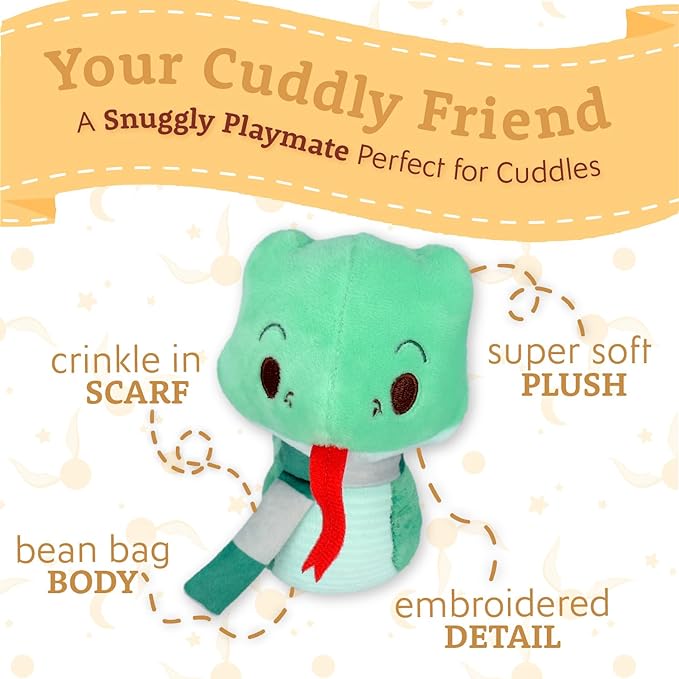 - Details: Slytherin's snake stands 6" and is ultra soft. Features a crinkle green scarf and beans. A magical Harry Potter gift for anyone who loves plushies.