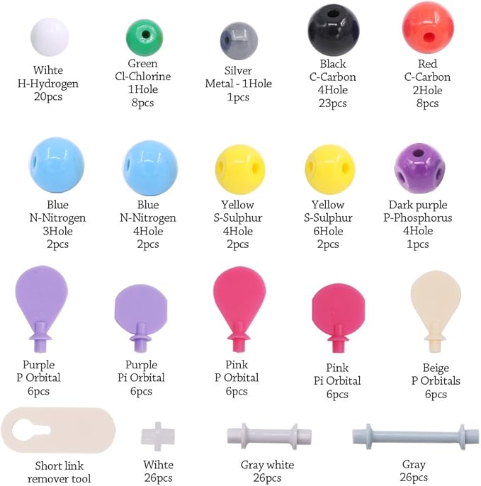 - ★ MOLECULE SCIENCE IN 3D --- We have prepared 178 Pcs molecular model set for you, This model contains C, H, O, N, P, S, CI, and other metals and a variety of single and double bonds, long bonds, long keys. Can be put high school, university chemistry in most of the organic or inorganic molecular structure model for the study of experimental operation.