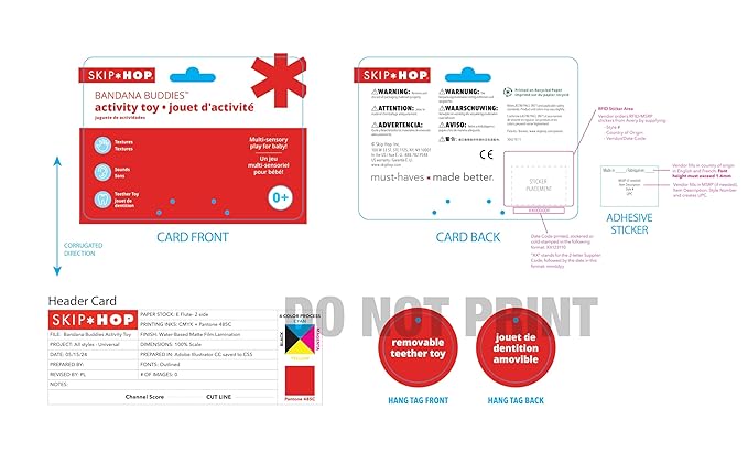 - This colorful character’s soft bandana teether detaches for mom to wear around her wrist for quick access