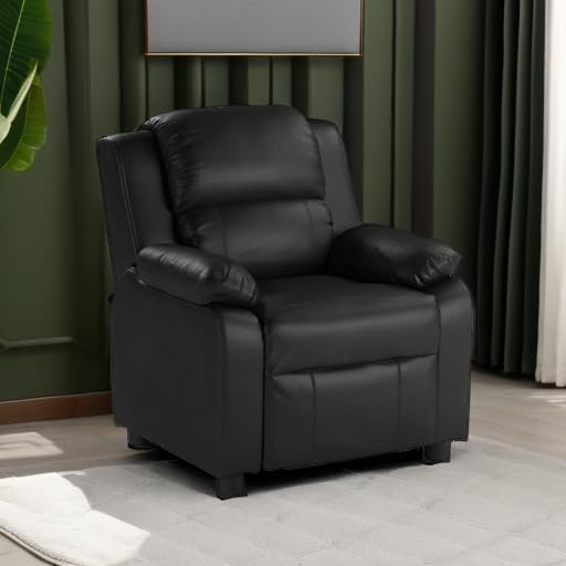 Costzon Kids Recliner, Leather Recliner Chair w/Footrest, Armrest Storage, Headrest & Lumbar Support, Ergonomic Lounge Chair for Living & Gaming Room, Adjustable Recliner Sofa for Boys Girls (Black)