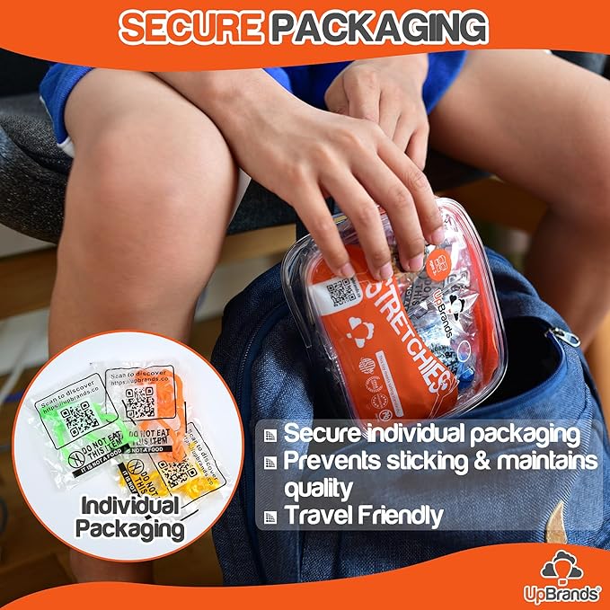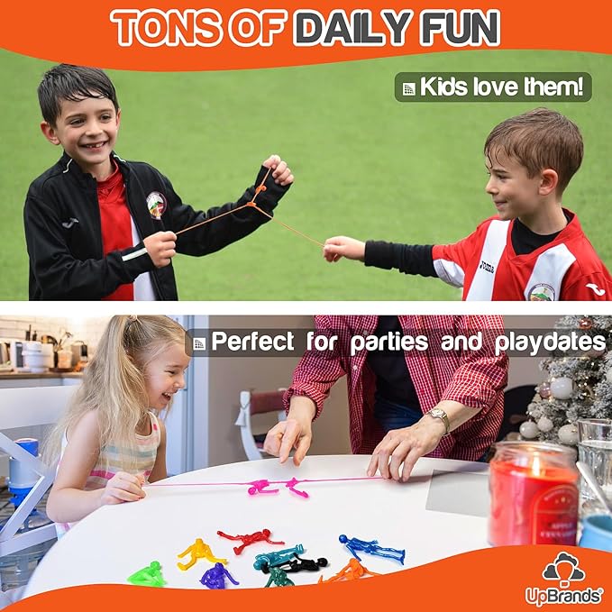- UpBrands Stretchy Skeletons 48 pack - an excellent kit for birthday party favors for kids. Children will play with these stretchy sticky toys and will love to share them in goody bag stuffers. They are perfect even for Halloween Trick or Treat bags. A must-have, along with all the fidget zipper bracelets, sticky hands, stretchy lizards, candy, cupcakes, and novelty toys in candy bags. Be the talk of the school and neighborhood with these Stretchy Skeletons.