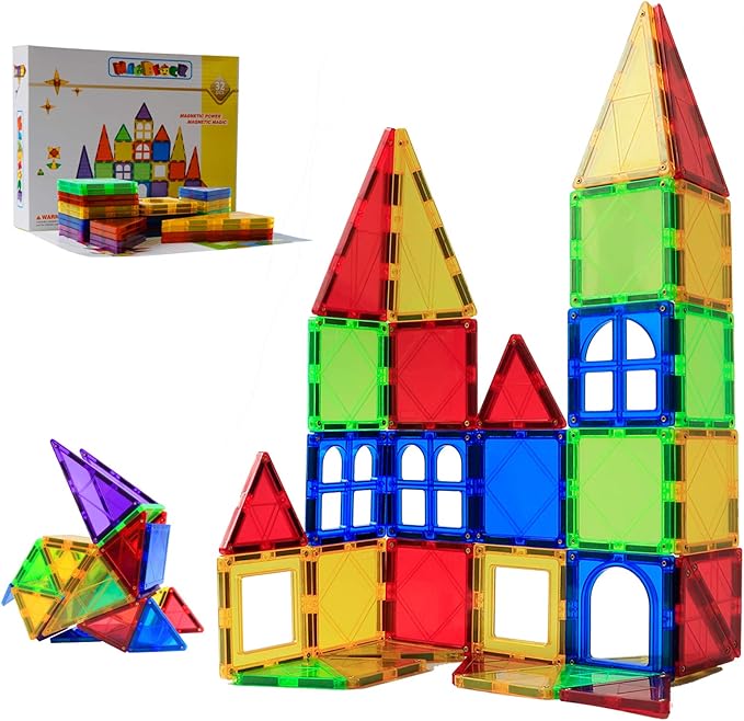 MAGBLOCK Magnetic Blocks - 32 Pcs Magnetic Tiles for Kids Ages 3-5 Magnet Blocks Tiles for Toddlers Magnetic Toys Educational Set