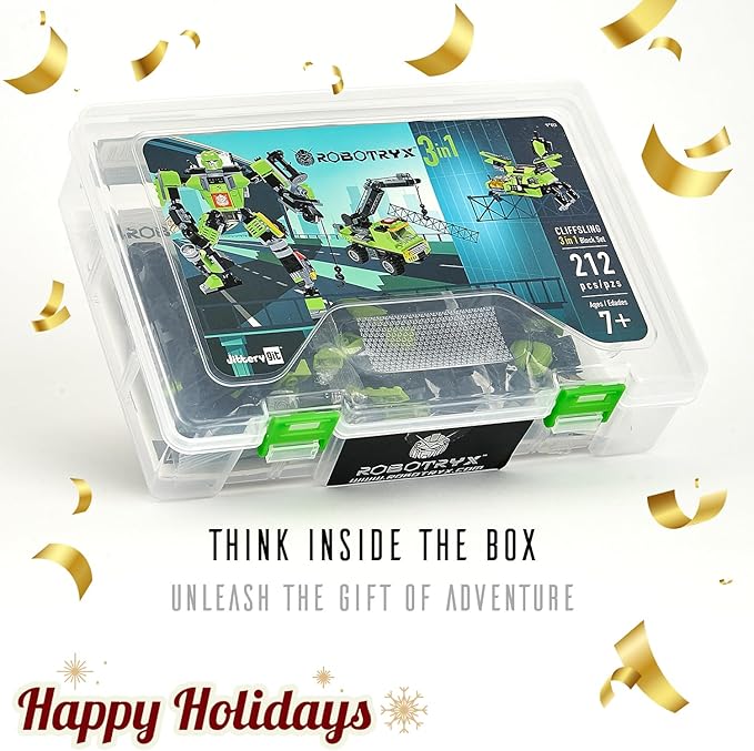 - 【The only building bricks set with a storage box】Each of our designed in USA Robotryx kits comes in a colorful storage box in which all the pieces can be stored after play. This means no more mess to give parents a easy break. It also means on-the-go fun with ready portability that can be taken wherever kids go so they can stage outer space battle scenes.