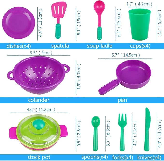 - EARLY DEVELOPMENT: Toddlers are known to have short attention spans. Give them this amazing STEM toy, and watch as they become entertained for hours on end! Set includes sets of fork, knife, spoon, cup and plate