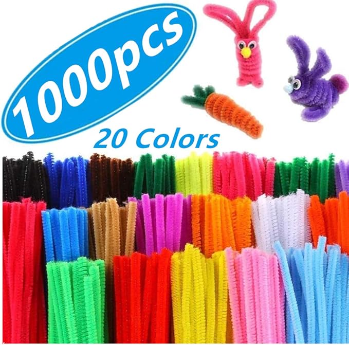 1,000 Pipe Cleaners in 20 Colors Pipe Cleaners Value Pack of Multicolor Chenille Stems for DIY Arts and Craft Projects and Decorations - 6 mm x 12 inch