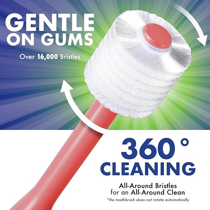 - ROUND HEAD – 360° round brush head that effectively cleans teeth, tongue, gums, cheeks and all the hard-to-reach places