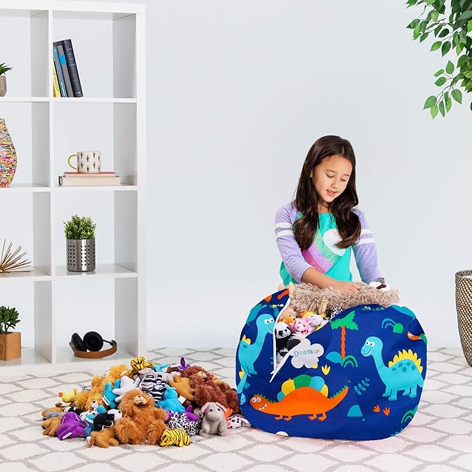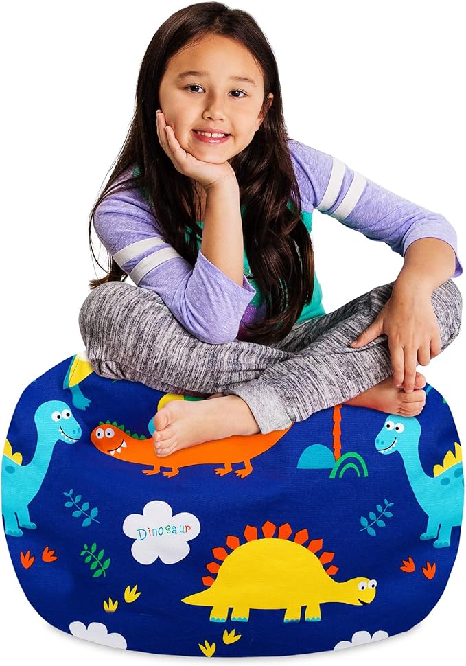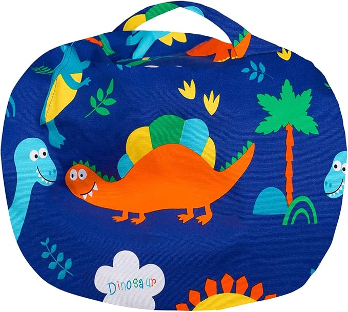 Posh Stuffable Kids Stuffed Animal Storage Bean Bag Chair Cover - Childrens Toy Organizer, Medium-27 - Canvas Dinos on Blue