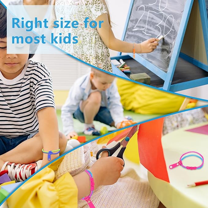 - Fidget zipper bracelet Normal size and long enough to fit almost all people, whether they are kids or adults so you can play with your kids and promote your relationship.