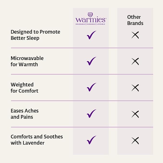 - Calming Aroma: Smelling lavender can promote a sense of relaxation. All Warmies contain the perfect amount of dried French Lavender for easier and more restful bedtimes.