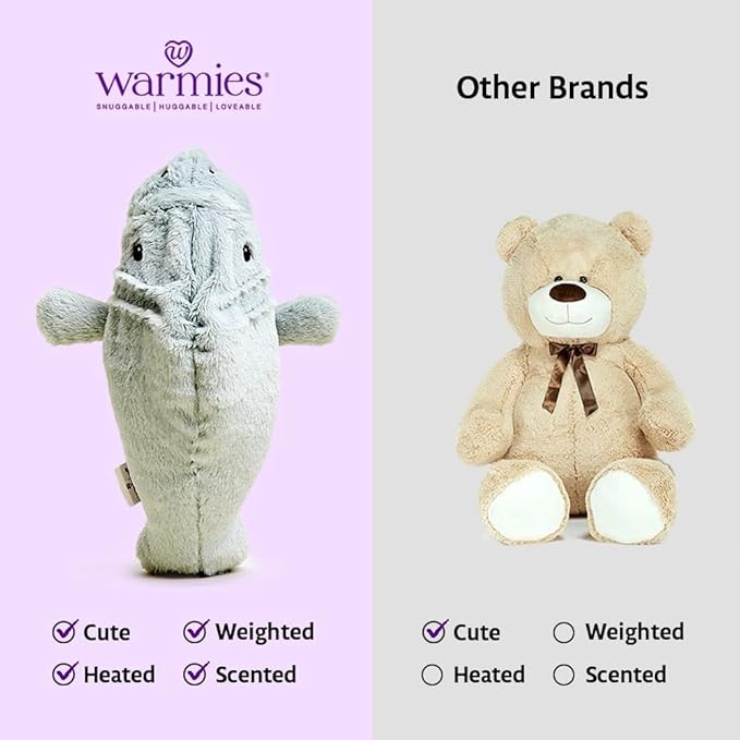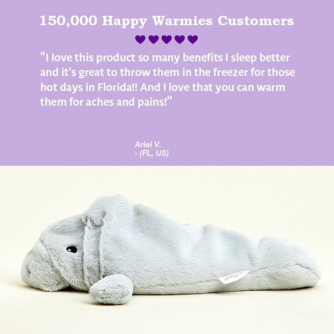 warmies Microwavable & Weighted Stuffed Animals, Manatee - Heated Stuffed Animal Plushie for Warmth & Comfort - Cute Soft Plush Toys for Adults & Children (Boys, Girls, Babies & Toddlers)