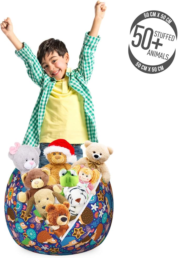 - Small size - You can stock over 50 plush toys in bean bag. Measurements: 22" W X 15" H when full.