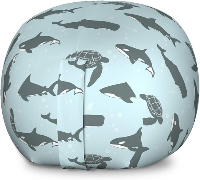 Lunarable Orca Storage Toy Bag Chair, Continuous Pattern of Whale Shark and Turtle Bubbles Aquatic Animals, Stuffed Animal Organizer Washable Bag, Large Size, Blue Grey