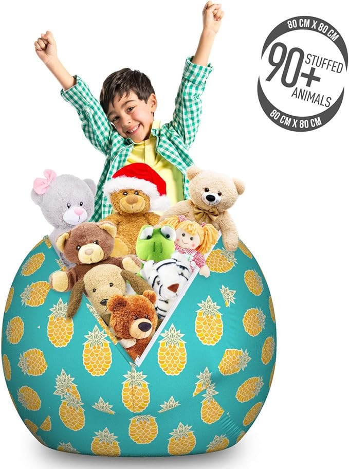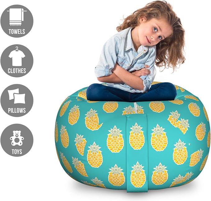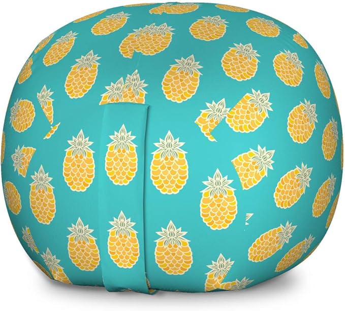 Lunarable Fruits Storage Toy Bag Chair, Pineapples Caribbean Tropical Hipster Nature Exotic Jungle Kitchen Print, Stuffed Animal Organizer Washable Bag, Large Size, Turquoise and Mustard