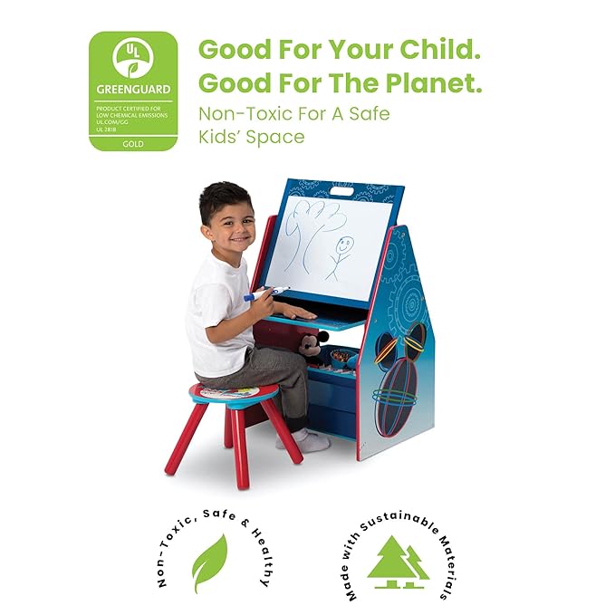 Delta Children Kids Easel and Play Station – Ideal for Arts & Crafts, Drawing, Homeschooling and More - Greenguard Gold Certified, Disney Mickey Mouse