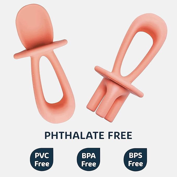 - TRAINING UTENSILS FOR BABY: Train your little one to be an independent self-feeder with a food grade silicone spoon and fork that feels soft and gentle on their gums. Our Tiny Twinkle silicone training utensils or baby-led weaning tools encourage your babies and toddlers in their first stage of self-feeding to learn how to eat in a fun, easy, and safe way.