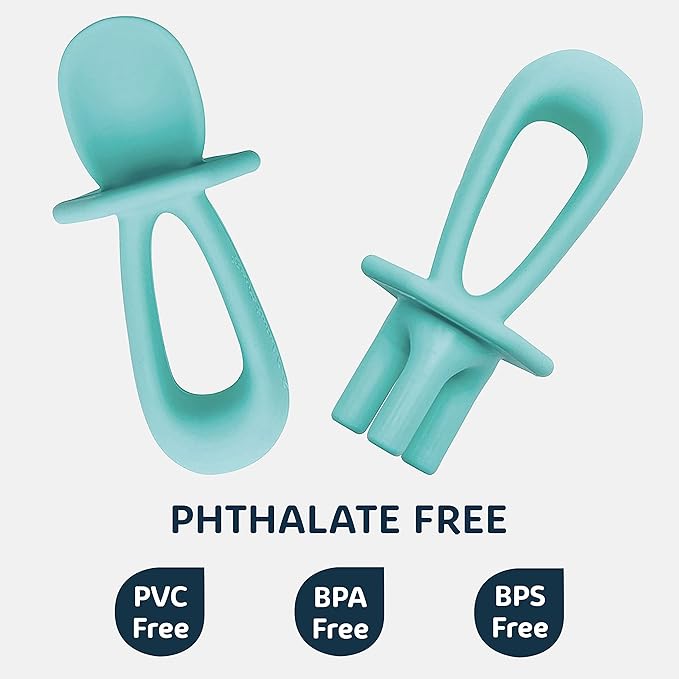 - TRAINING UTENSILS FOR BABY: Train your little one to be an independent self-feeder with a food grade silicone spoon and fork that feels soft and gentle on their gums. Our Tiny Twinkle silicone training utensils or baby-led weaning tools encourage your babies and toddlers in their first stage of self-feeding to learn how to eat in a fun, easy, and safe way.