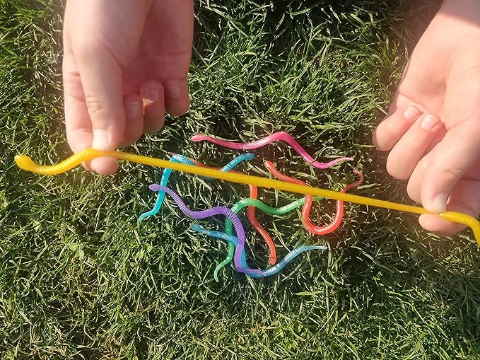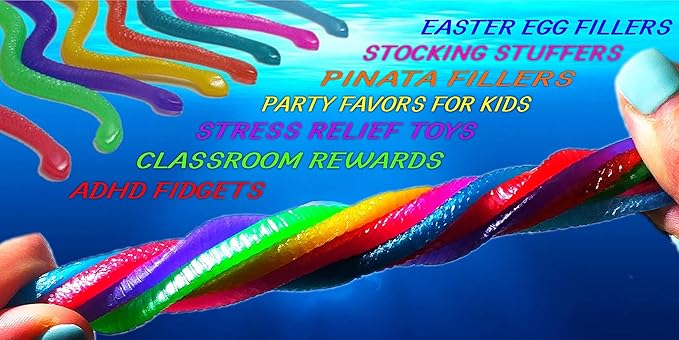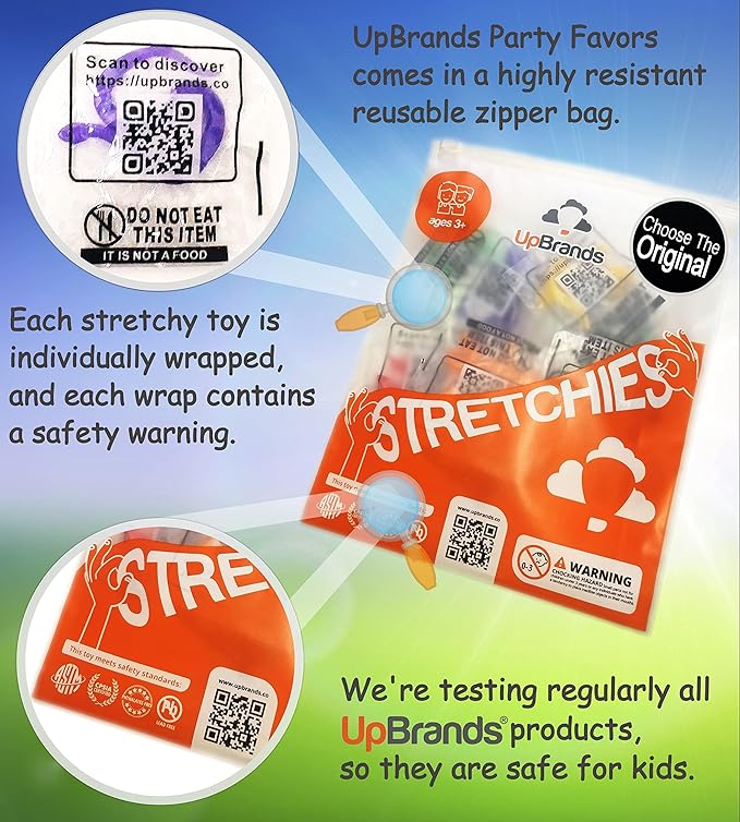- UpBrands Stretchy Snakes Toys 24 Pack - an excellent kit for birthday party favors for kids. Boys and girls will play with these rubber snakes toys and will love to share them in goody bag stuffers. A must-have, along with all the fidget zipper bracelets, sticky hands, stretchy frogs, stretchy skeletons, balloons, candy, cupcakes, stretchy dinosaurs, glow in the dark decorations, and novelty toys supplies in candy bags. Be the talk of the school and neighborhood with these bendable reptiles.