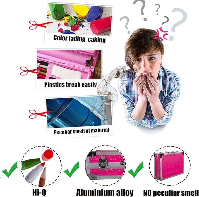 - 【Sure to be a Hit】Made of eco-friendly materials, non-toxic, conforms to ASTM 963. All of the art supplies come inside a Aluminum art suitcase, looks cute and feels nice to touch. The case opens easily showcasing some art supplies, the arms extending up to show inside level with more pieces of the art set. A gift to budding Artists, boys, girls, teen, kids, children, grandchildren and nephew ages 3 to 12 for birthday, holiday, school, Christmas present, to yourself to just play around and relax