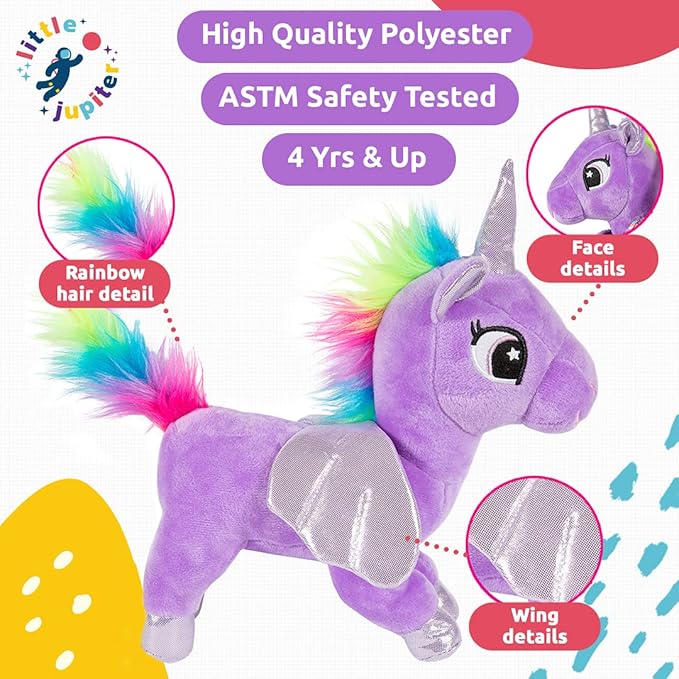 Little Jupiter Plush Pet Set - Unicorn Toys - Unicorns Gifts for Girls - Stuffed Animal for Kids - Unicorns - Plush Toy - w/Reversible Sequins & Charm (Purple Rainbow Unicorn) Age 4-5 - 6-7 yr