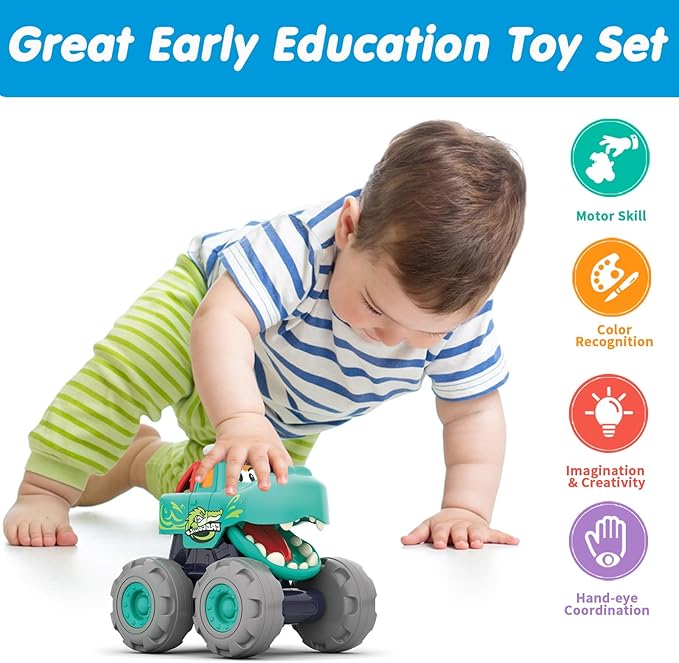 - 【Perfect Gifts for Toddler】Monster truck is a fun party favor, birthday bags gift set, Christmas gift, and any other celebrating gift for boys/girls/toddlers 1 + years old. These toys cars also offer an ideal opportunity for parents to engage fully with their children.