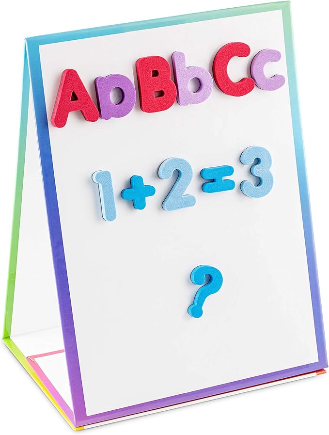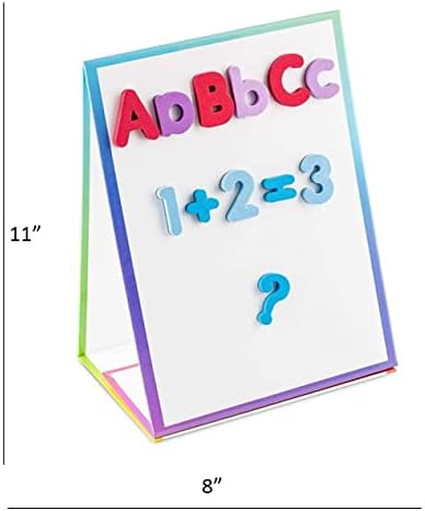 Tabletop Magnetic Easel Whiteboard (2 Sides) Includes:199 Magnetic ABC Alphabet Letters-Numbers-Symbol's, 5 Dry Erase Markers, & 1 Eraser. Drawing Art White Board Educational Kids Toy