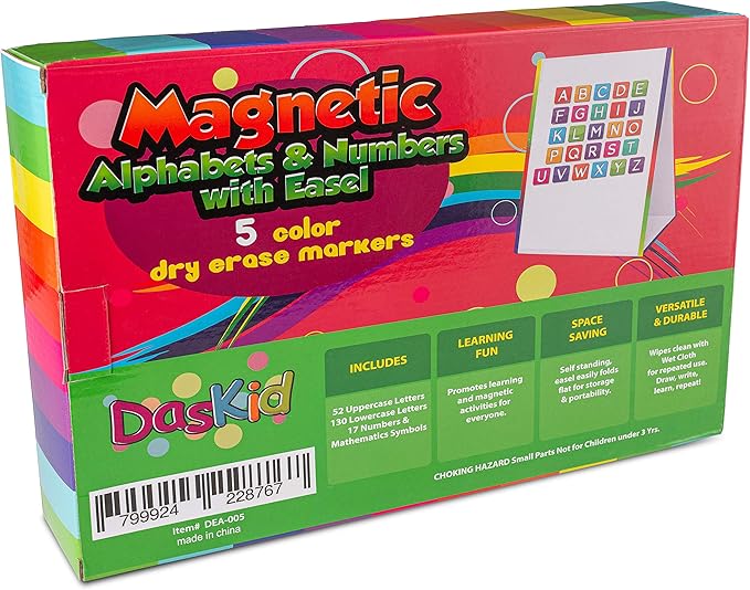 - FUN LEARNING FOR ANY CHILD: Our ABC Magnetic Set Includes: 5 sets of lowercase letters & 2 sets of uppercase letters for a total of 182 letters, 17 Numbers/ Mathematics symbols, Also included in this kit are a double-sided writable magnetic board, 5 dry erase Markers, and 1 eraser.