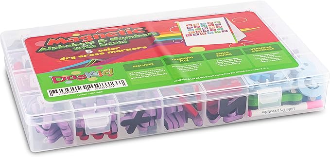 - FUN LEARNING FOR ANY CHILD: Our ABC Magnetic Set Includes: 5 sets of lowercase letters & 2 sets of uppercase letters for a total of 182 letters, 17 Numbers/ Mathematics symbols, Also included in this kit are a double-sided writable magnetic board, 5 dry erase Markers, and 1 eraser.