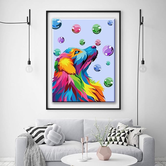 - 【Enrich your Life】 - Bubble dog DIY painting kit is a good learning toy for children. Experience a sense of achievement, reduce stress, emotional adjustment, enhance self-confidence and perseverance, cultivating patience. Animals paint by numbers for adults is suitable for the elderly and children