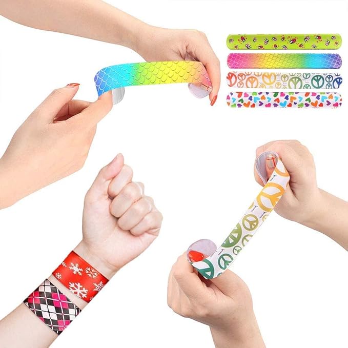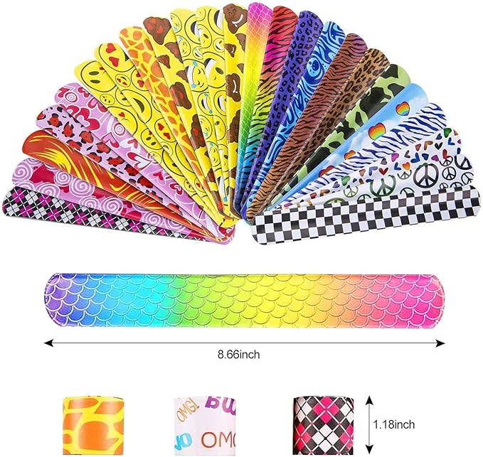 - 【Premium quality】 Slap bands are made of durable metal core inside and tightly wrapped with soft artificial leather with clear prints. The edges are firmly sealed. Automatically form a perfect circle if slap it to your wrist, not easy to break or fall off.