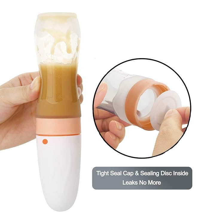 - 【PROTECTIVE CAP & STAND-UP BOTTLE 】 Our baby food feeders come with a protective cap. Not only does this cap keep the silicone tip clean and hygienic, but also stops you covering your hands with baby food while you fill the food reservoir. These bottles can stand upright by themselves, freeing your hands for the unexpected.