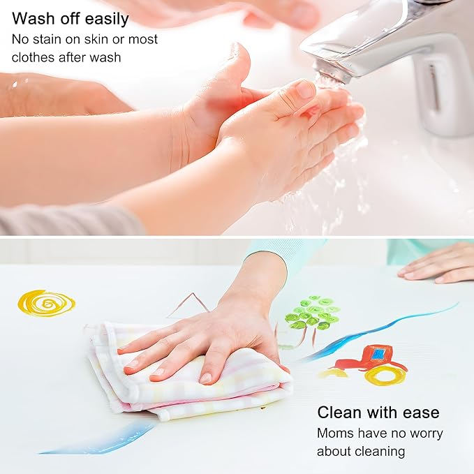 - WASHABLE & CHILD-SAFE: Our finger paint is water based that can be easily washed off from skin and other surfaces like desks, glass and fabrics. Besides, this set also comes with a waterproof smock which can keep clothes clean and neat. Conforms to U.S. ASTM D-4236 & EN71-3, non-toxic and acid-free, safe for kids