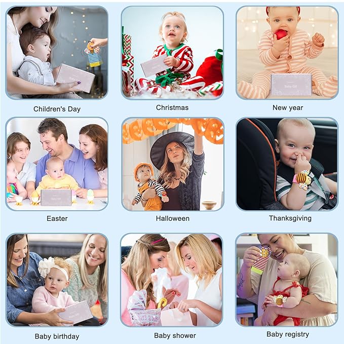 - PERFECT BABY GIFTS -- Give these Soft Baby Rattles Toys as the perfect infant toy gift.Suitable for Baby showers/Baby sprinkle/Sip & See gift/Newborn baby gift/Birthday gift/Registry gift/Easter/Halloween/Thanksgiving/Christmas/Holiday gift/Christening gift/'Just because'gift.