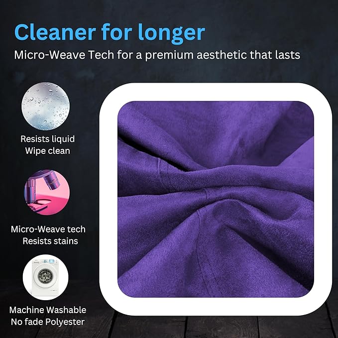- PREMIUM MICROSUEDE: This supersoft and velvety bean bag chair for adults and kids is crafted of sturdy microsuede with double stitched seams for long lasting comfort. Super practical it resists liquid, pet hair and dust and is machine washable for a cleaner look with less effort.